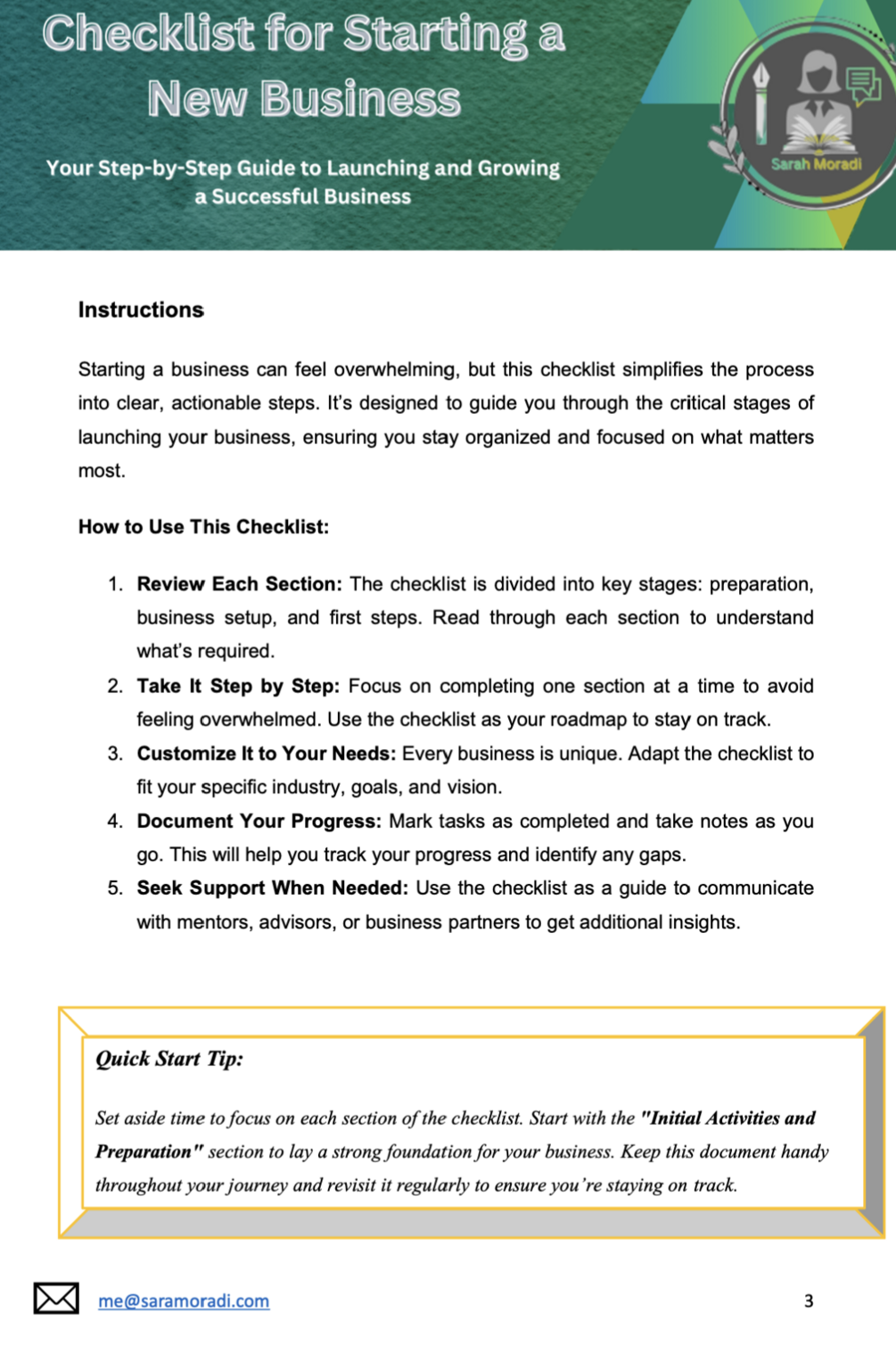 By buying the Checklist for Starting a New Business, you gain a clear, actionable roadmap to confidently launch and grow your dream business, covering every essential step from planning to execution.