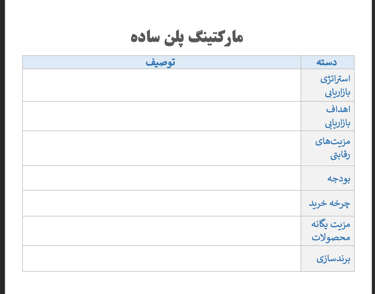 مارکتینگ پلن مثل بیزینس پلن معمولا یه مدرک اصلی و تخصصی کسب و کار شما حساب میشه و شبیه به یک دفترچه یا کتابچه هست.